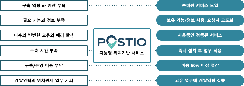 고객의 어렵고 다양한 위치관제 요건을 충족하고, 잦은 오류와 에러를 제거하고, 시스템 구축/운영에 소요되는 많은 시간과 비용을 절감하고, 고유 업무에 역량을 집중하는 효과 제공